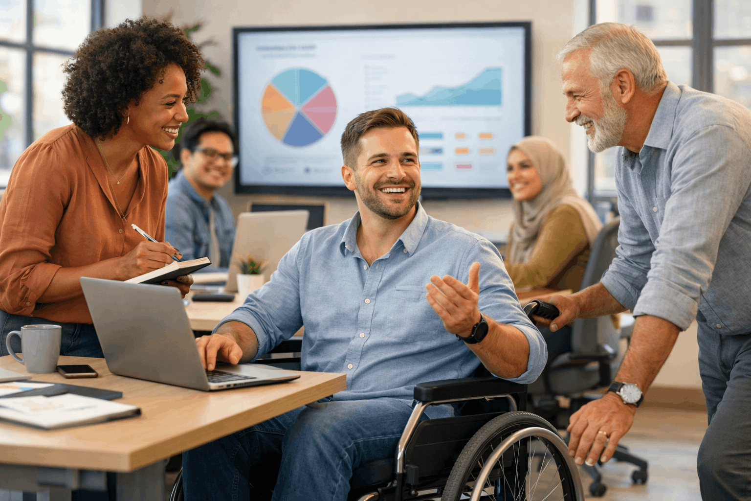 Guia prático para empresas e gestores sobre como implementar políticas de inclusão para pessoas com deficiência. Aborda adaptações físicas, tecnologias assistivas, cultura organizacional e os benefícios da diversidade para o ambiente corporativo. Destaca o trabalho do INAIS na capacitação de PcDs.